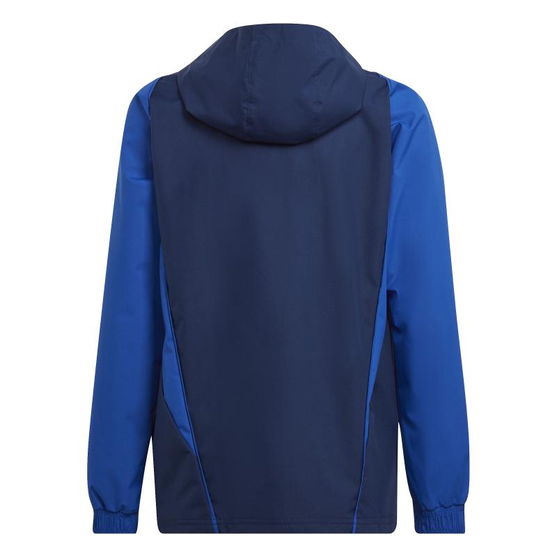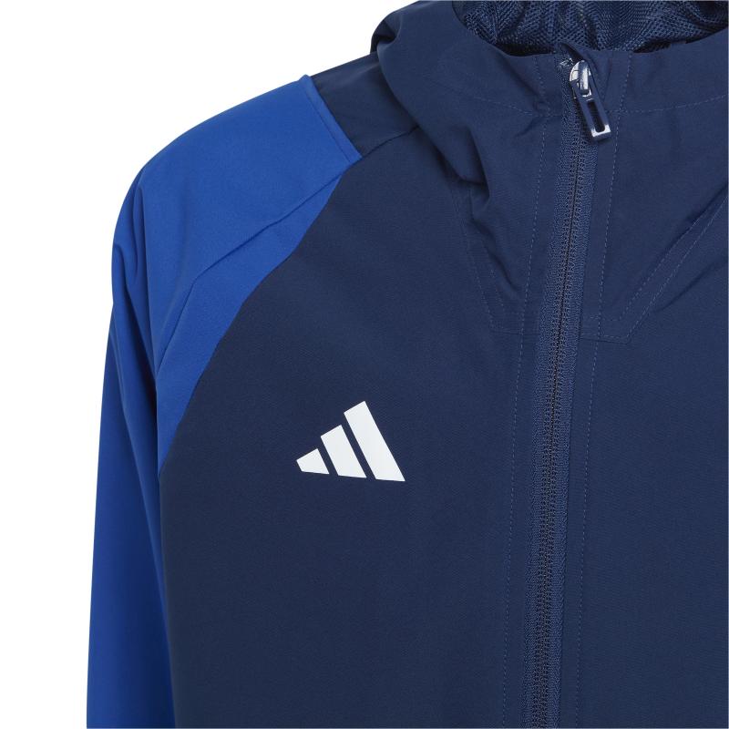 Laget for trening på toppnivå. Denne adidas-fotballjakken for juniorer er en del av Tiro 23 Competition-kolleksjonen, og er akkurat det som trengs når bygene ruller inn. Den har vannavstøtende materiale på utsiden og mykt mesh-fôr på innsiden, og hjelper deg med å holde fokuset på ballen. Elastiske mansjetter og hette med strikkjustering gir ekstra beskyttelse.Lages med 100 % resirkulerte materialer, og representerer bare én av løsningene våre på veien for å gjøre slutt på plastavfall.